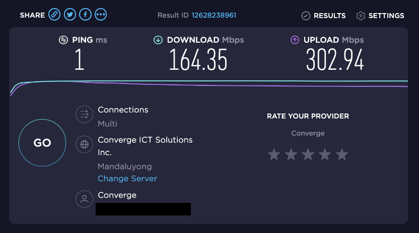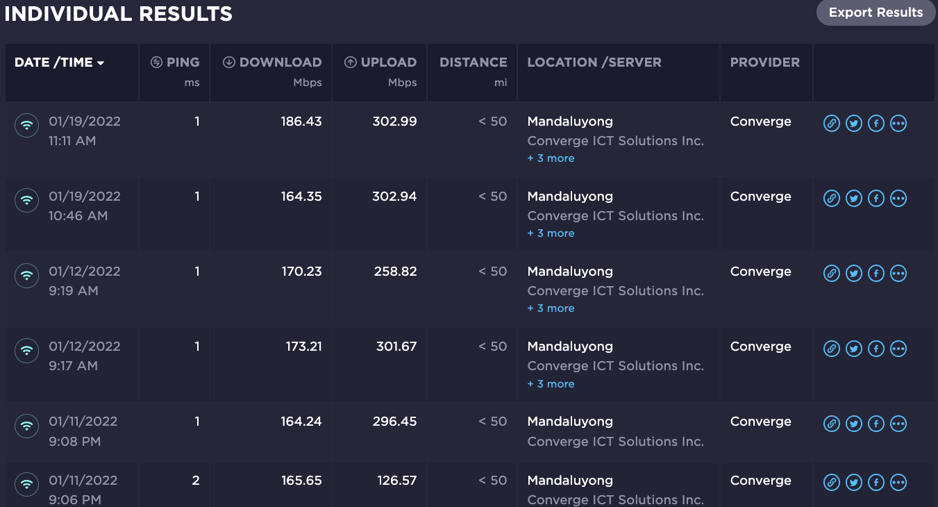 Internet speed test results: