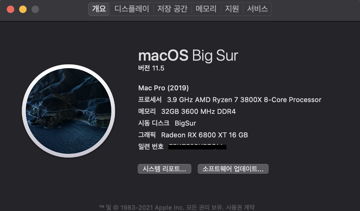 • Installed Operating Systems: Big Sur 11.4 - Windows 10 Pro