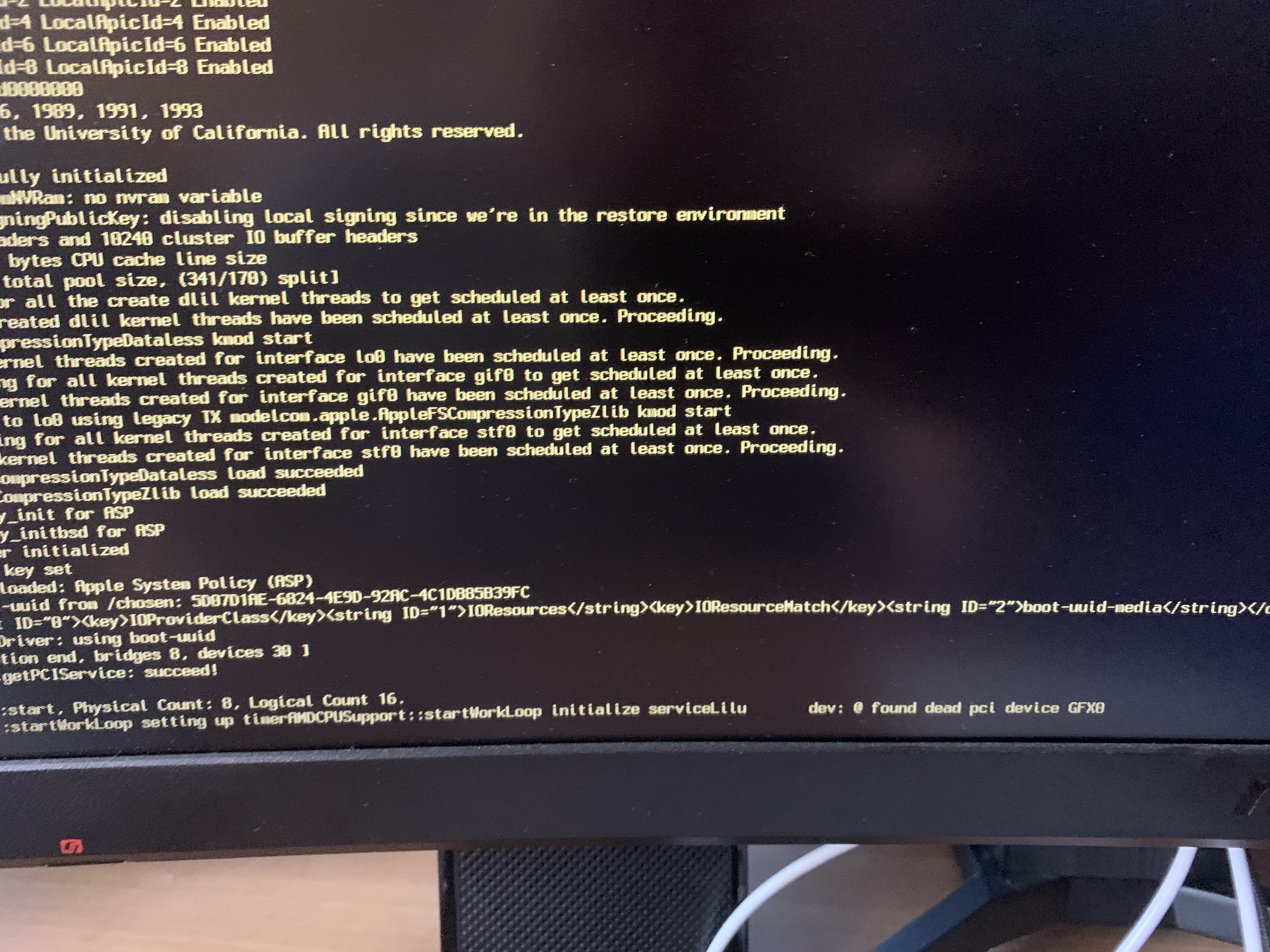 When im trying to update to Monterey (installer get via the App Store), open core is starting to boot and... The log are partially erased/broken and a big forbidden sign is in the middle of the screen.